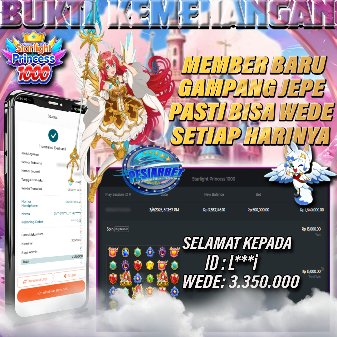 PESIARBET Bukti Kemenangan Slot STARLIGHT PRINCES 1000